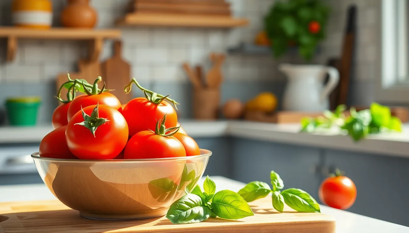 Fresh tomatoes provide impressive nutritional benefits. They contain vitamin C, which supports immune function, and vitamin K, vital for bone health. Antioxidants like lycopene contribute to heart health and may lower cancer risk. Fiber found in tomatoes aids digestion, ensuring improved gut health. An average medium tomato includes approximately 22 calories and 1.5 grams of fiber. Incorporating fresh tomatoes into daily meals enhances nutritional intake, making them an excellent choice for health-conscious individuals.